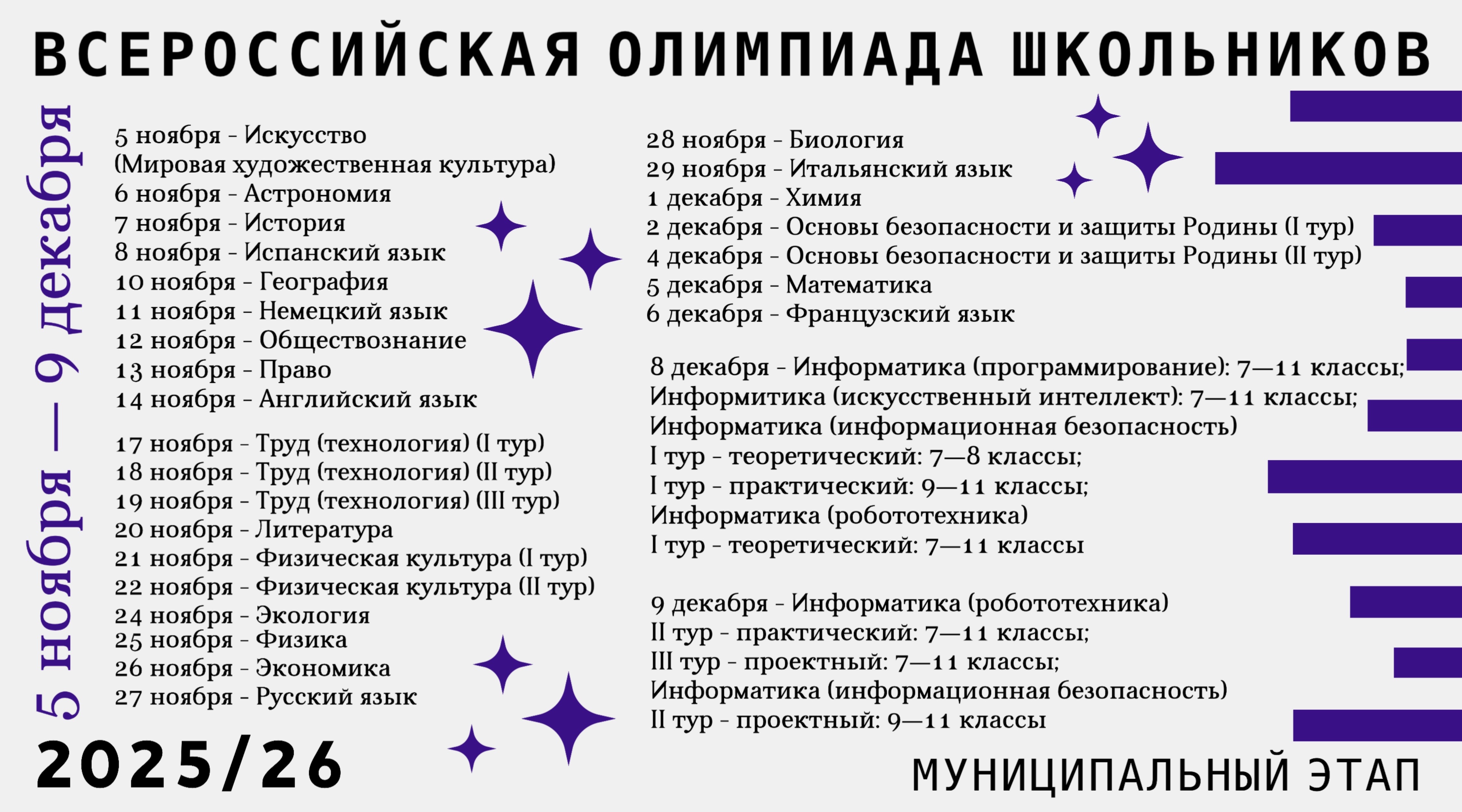 Всероссийская олимпиада школьников: 2025/26 учебный год.